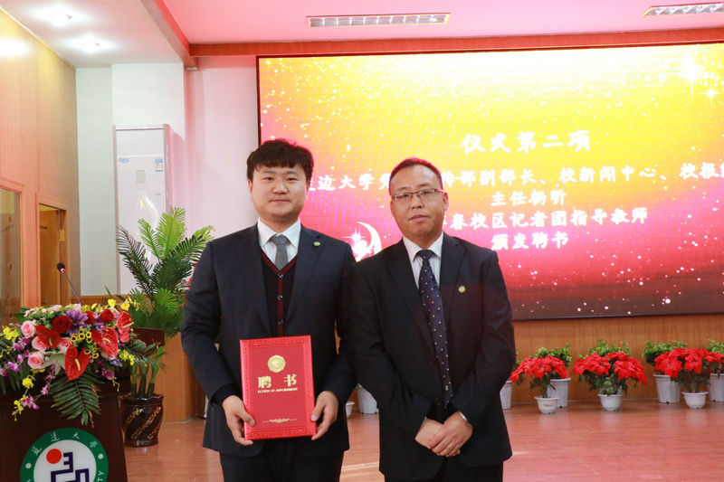 随后,教育基金会项目部科长梁京城宣读2017年启强助学金获助学生名单,齐强为获资助的十名学生记者颁发证书及助学金。接着,学生记者协会秘书长李胜男宣读珲春校区成立记者团的批复文件,杨昕为珲春校区记者团指导教师颁发聘书,珲春校区记者团正式成立。
