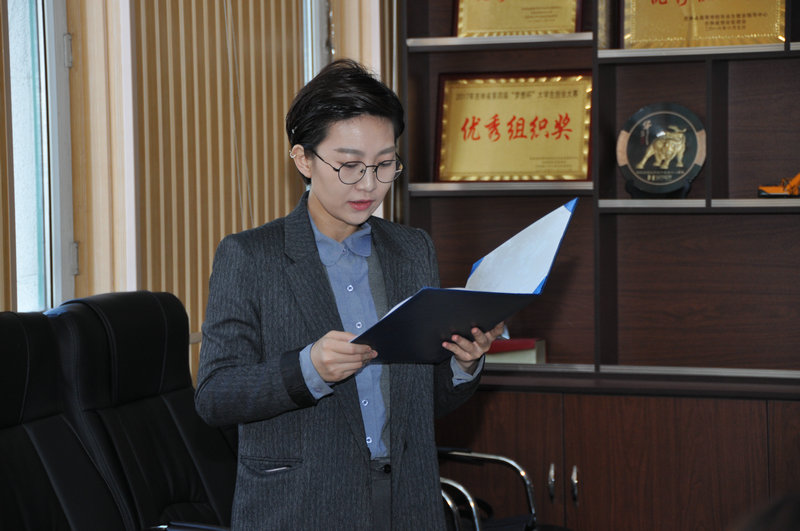 外国语学院17级英语专业田雅代表获奖学生发言。她感谢蓝英奖学金的设立者李宪立学长,并感谢在学业、生活等方面给予指导与关怀的老师们。她表示这份奖学金是一种用金钱难以买到的激励、鞭策与希望,而且是获得认可与肯定的同时,更激励自己积极向上,促使自己更加严格要求自己。最后她表示,自己不会辜负学长寄予的期望,努力学习,成为一个优秀的人。